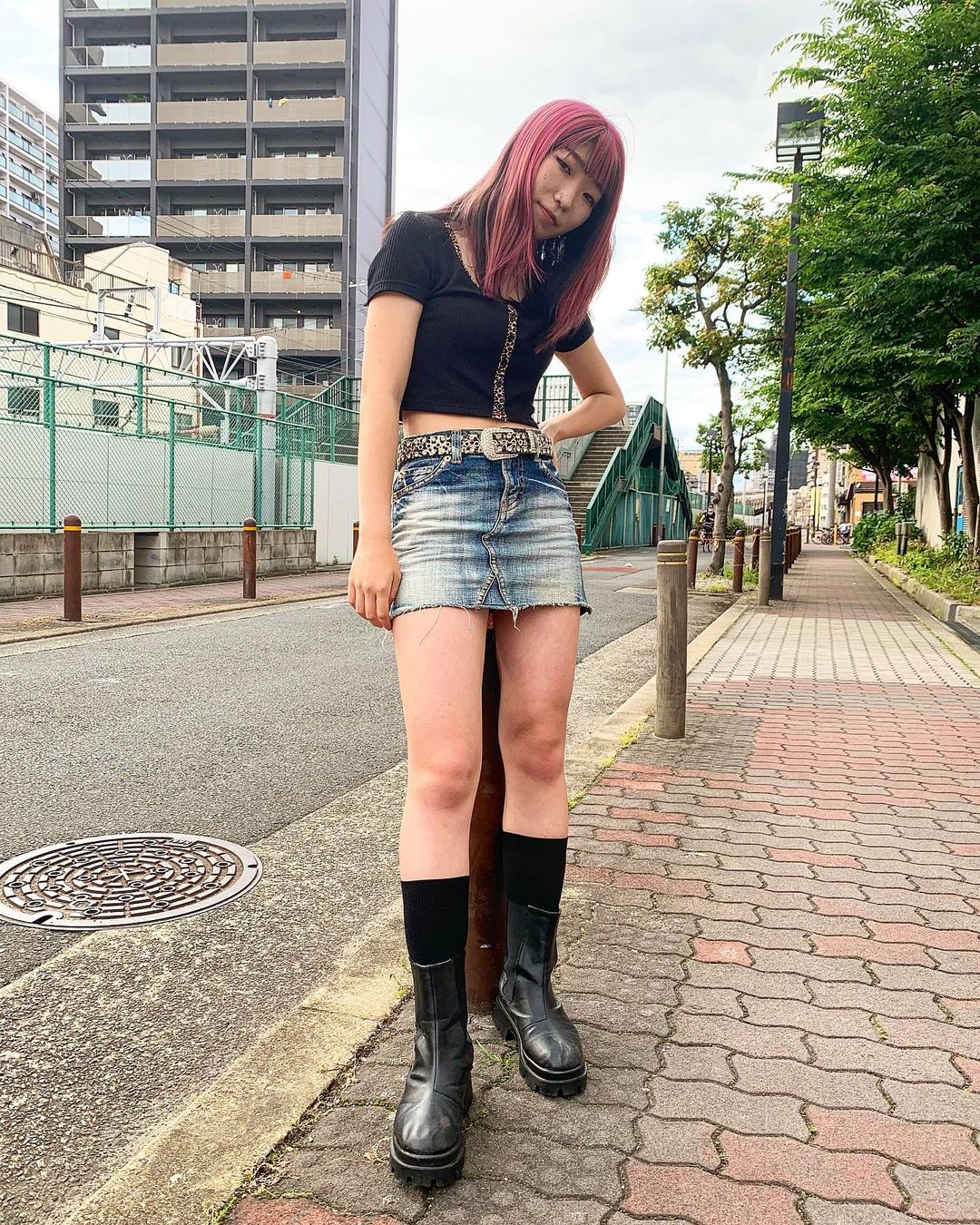 トップスとベルトを豹柄で合わせたところです!