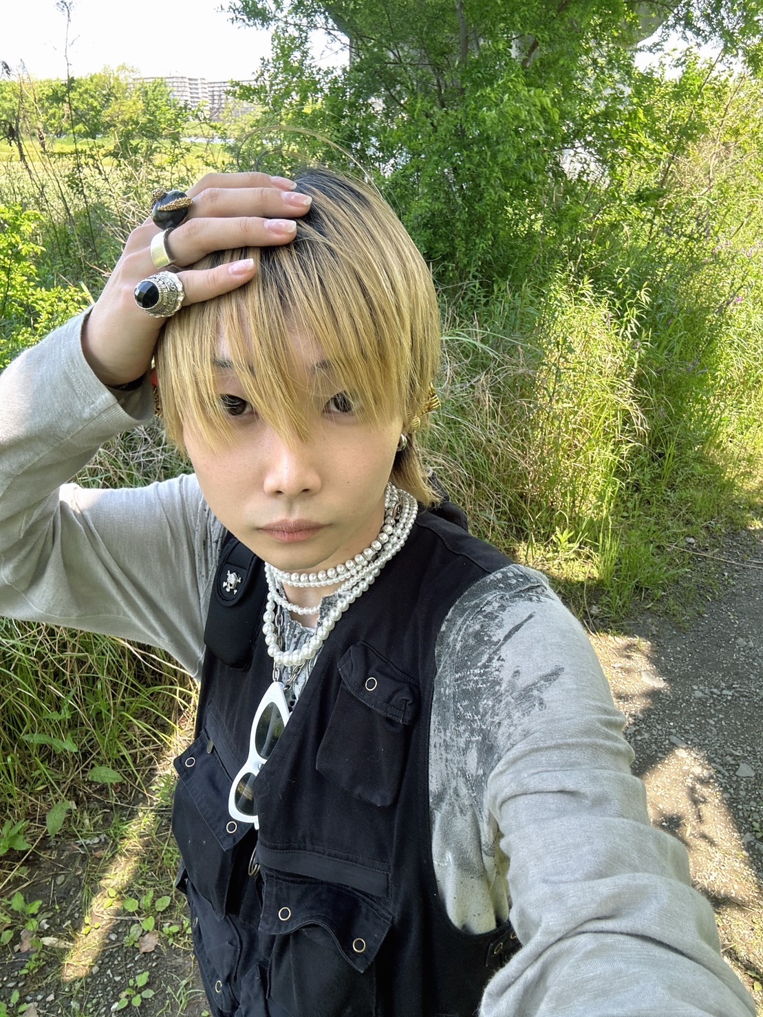 モードとグランジのテイストが好きなので、トップスにはグランジらしいアイテムを取り入れました。