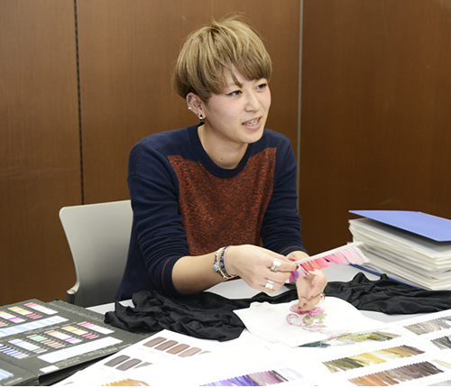 マロニエでの経験を通して身についたことといえば、ファッションの基礎や、服づくりの技術や知識はもちろんなんですが、それ以上に大きいのは物怖じしない積極的な姿勢だと思います。昔はけっこう人見知りするタイプで、人と打ち解けて話したり、自分の言いたいことをちゃんと言える方ではなかったんです。でも、マロニエで、友だちはもちろん先生方ともすごく近い距離間で接することができ、そのおかげですごく積極的な性格に変わることができたと思います。今の会社に入社して、今の部署に新入社員が配属されるのがすごく久しぶりだったので、周りが皆さん大先輩ばかりで……以前の私なら、きっと萎縮してしまっていたと思うんですが、マロニエで度胸を鍛えられたおかげで(笑)、のびのびと仕事させてもらっています。今はまだアシスタント的な立場ですが、将来は本国で自分が作りたい商品をプレゼンテーションして、自分の手がけた商品を世に送り出せるようになりたい。それが今の一番の夢です。