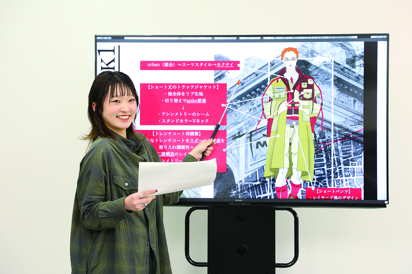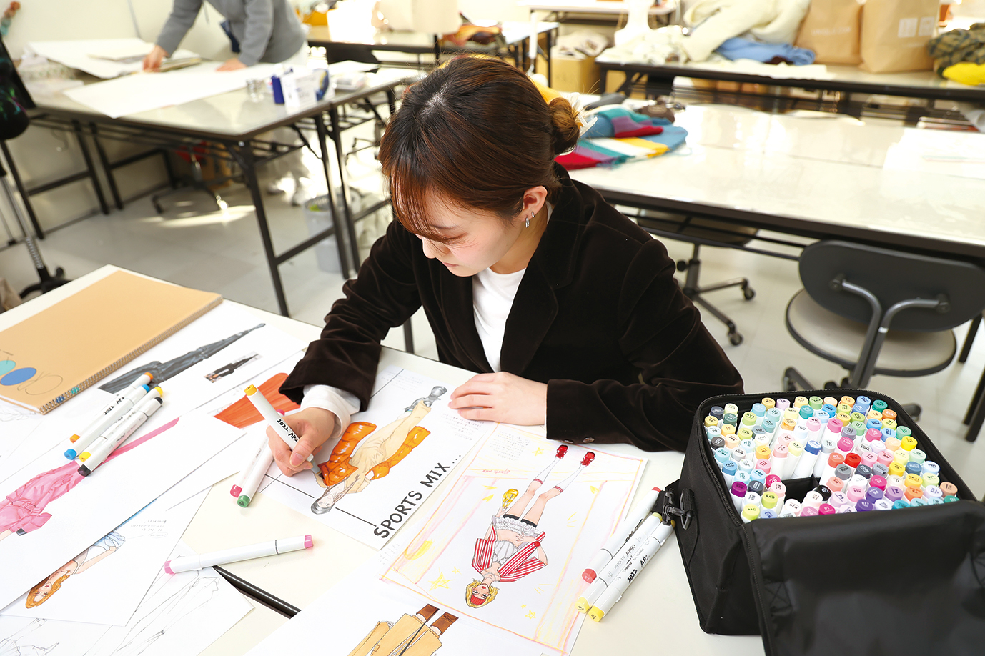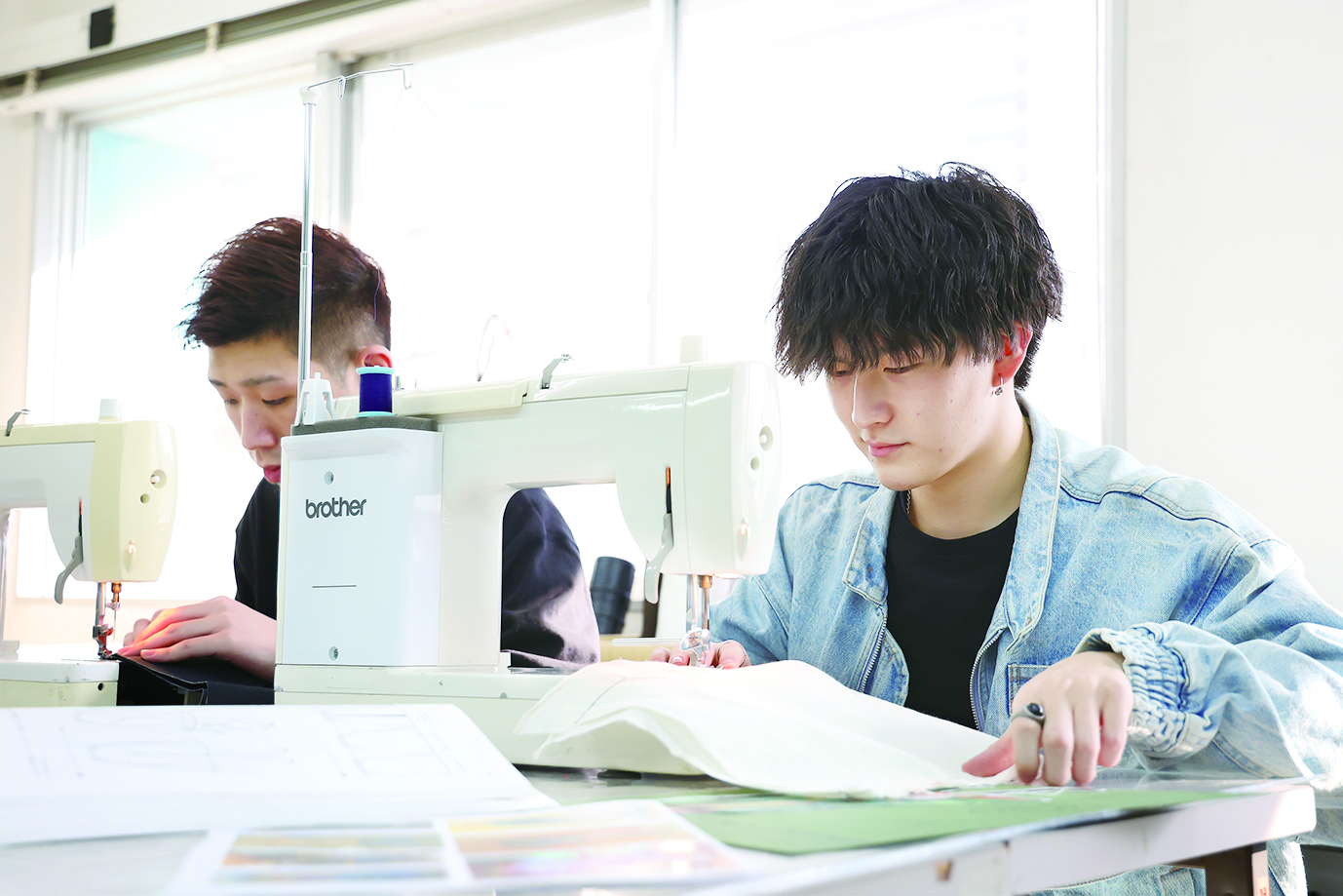 オリジナルブランドを考える授業は、企画からプレゼンまで行うので大変ですが楽しいです。コースでは、生地選びひとつでも、縫製の仕方や予算を考慮するなど、作ってみないとわからないことを学べます。
