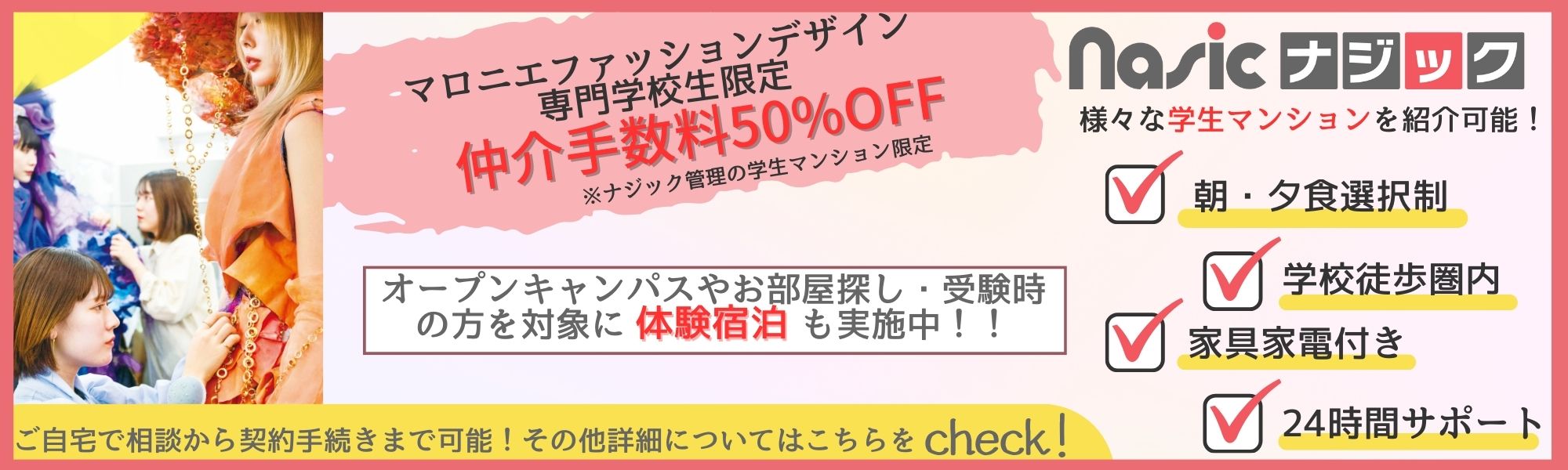 ナジックでは学生様が安心してお部屋探しができるように「24時間サポートの学生マンション」 をご紹介しております。 お気軽にお問い合わせください♪