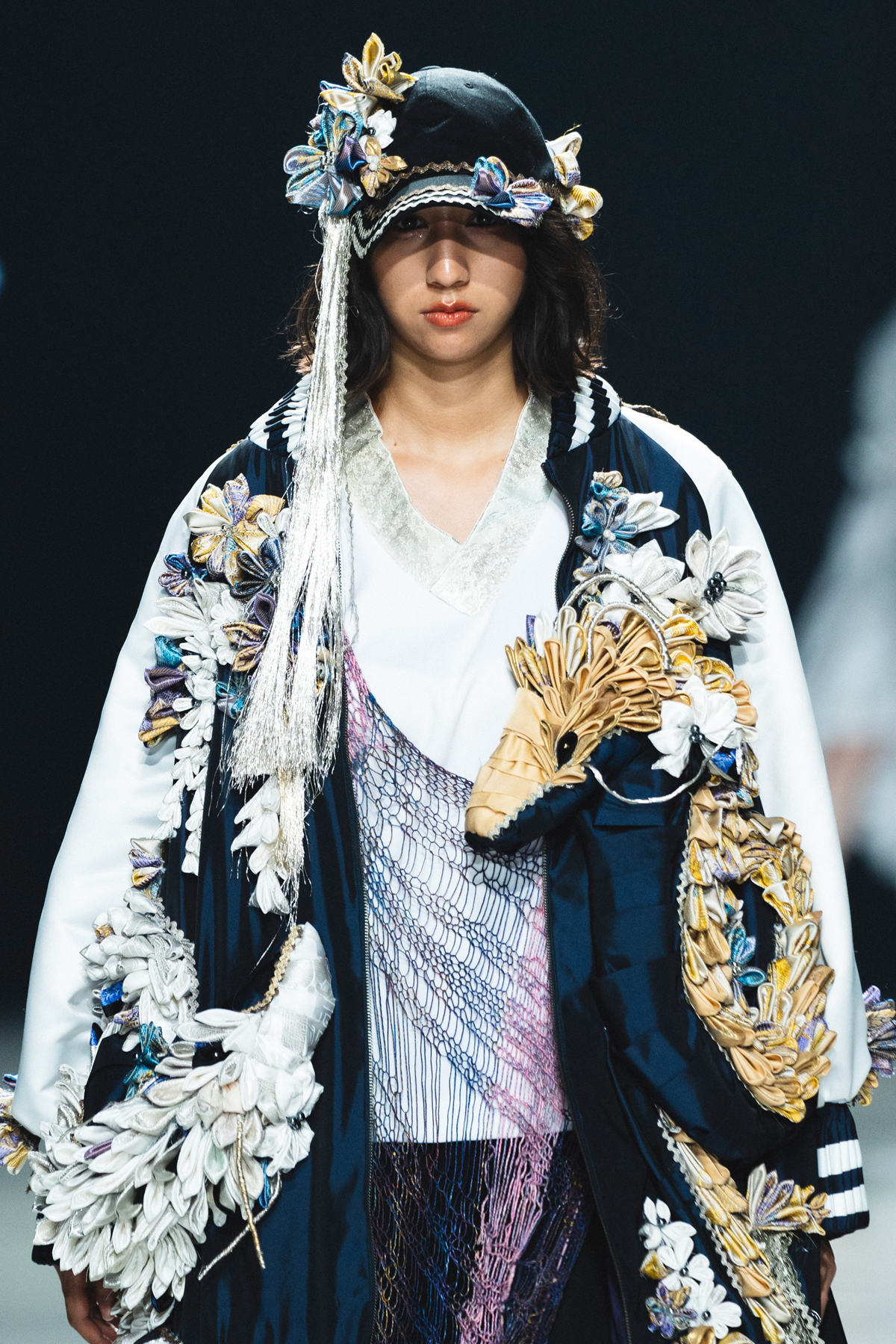 そしてスカジャンの特徴である繊細な刺繍によって施される躍動感のある龍や鳳凰を使われることがなくなった着物生地を日本独自の伝統工芸であるつまみ細工で表現。