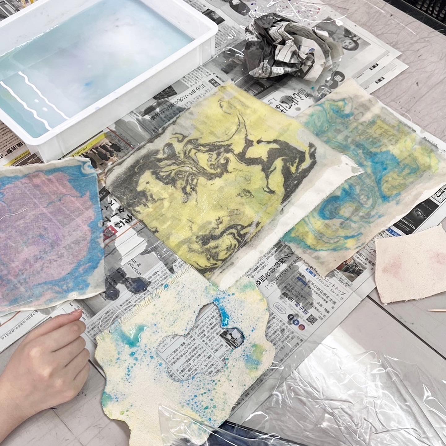 素材学の授業で「マーブリング」を行いました🌈
