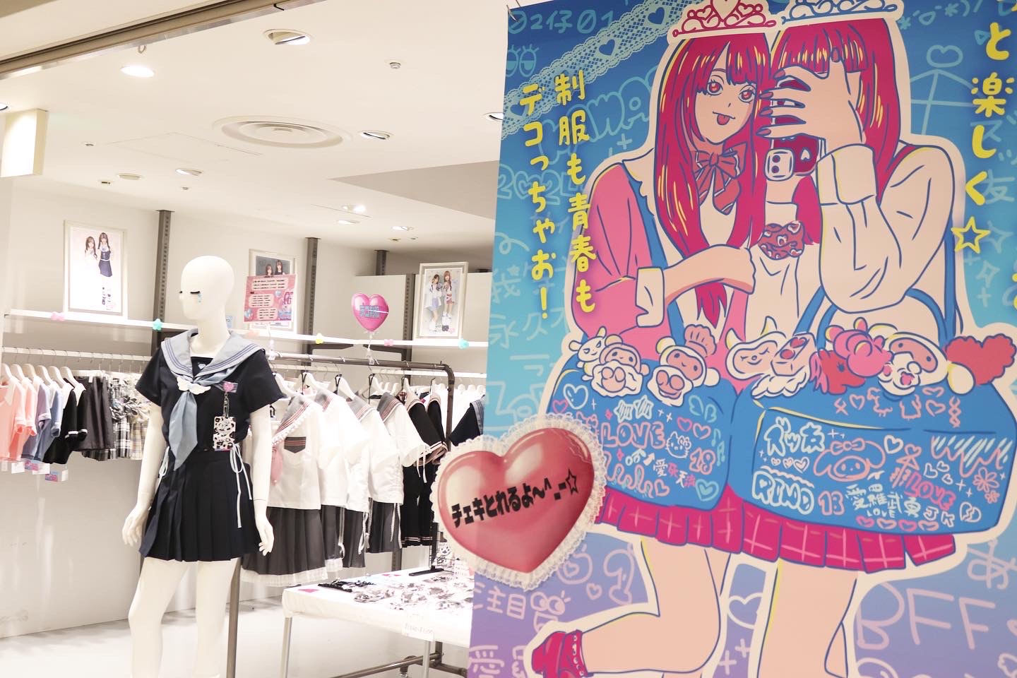 制服や可愛くデコったリボン、雑貨などを販売し、