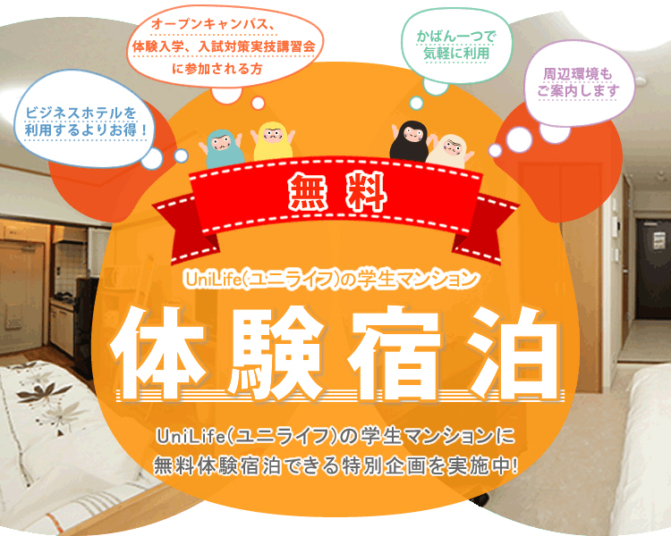 ※体験宿泊の申し込みには、期日があります。(ナジック 10〜14日前、UniLife 7日前 まで)