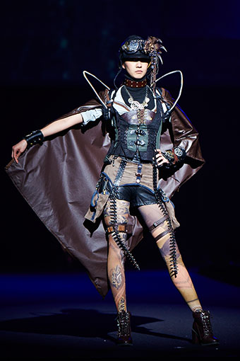 現状から脱却したいという強い願いと、現状においてもがき苦しんでいる葛藤を、デニムのダメージ感や生地の色変化、アシンメトリーなシルエットの中に込めました。